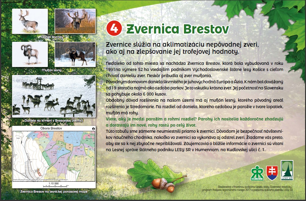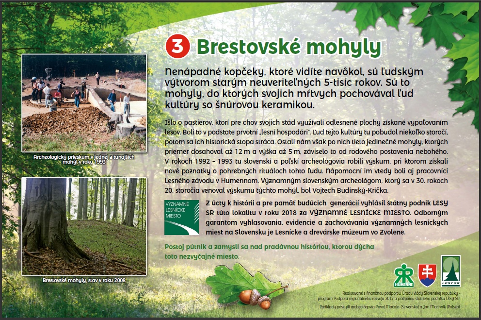 Regionálna rozvojová agentúra Humenné s finančnou podporou Úradu vlády Slovenskej republiky – program „Podpora regionálneho rozvoja“ a v spolupráci so štátnym podnikom LESY SR vytvorila a realizovala Investičný projekt pod názvom: NÁUČNÝ CHODNÍK K BRESTOVSKÝM MOHYLÁM. Náučný chodník vznikol na platforme predstavovania historických, kultúrnych a prírodných zaujímavosti regiónu. Prevedie Vás zaujímavými historickými zastávkami, na ktorých Vám zhotovené informačné tabule priblížia zaujímavosti, spojené s konkrétnym miestom a lokalitou, v ktorej sa nachádzajú. Pozývame všetkých záujemcov o históriu, kultúru a prírodné zaujímavosti na prechádzku Náučným chodníkom v okolí mesta Humenné.